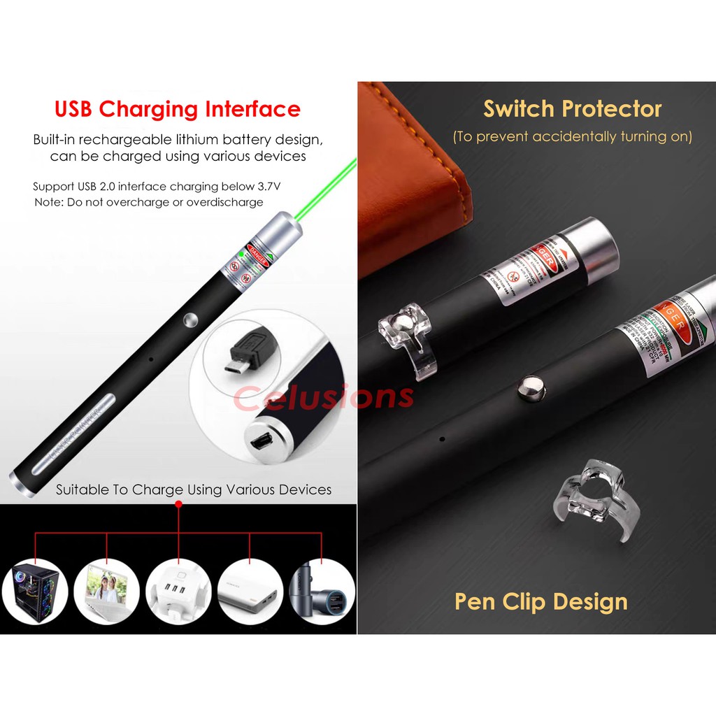 ⚠️Laser Pointer⚠️Pen USB Rechargeable AAA Batteries Powerful Green Red Purple Blue Light Beam Presentation Clicker
