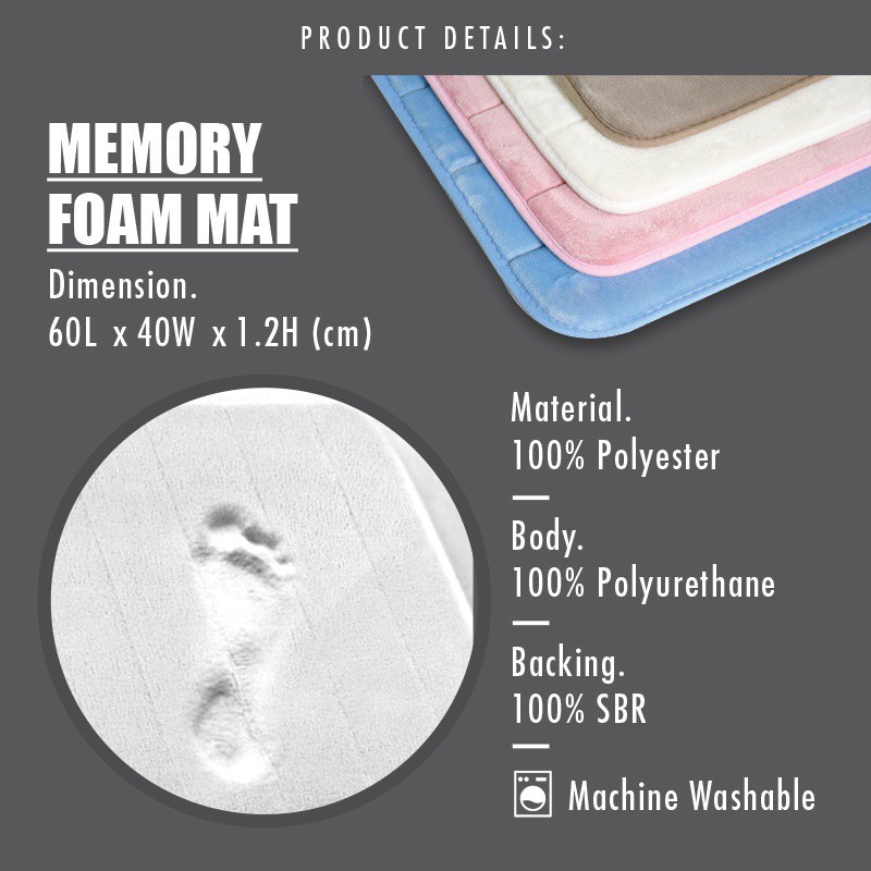 Quality:Good Appearance:Good Suitability:Good Very cushy and nice to step on after a shower. Bounce back into shape very fast. Colour suits my vinyl flooring too!