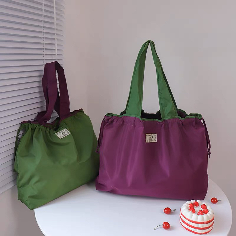 Received within 3 days of purchase. Good nylon quality, able to hold onto my groceries. Drawstrings help to keep the items inside in place. Highly recommend.