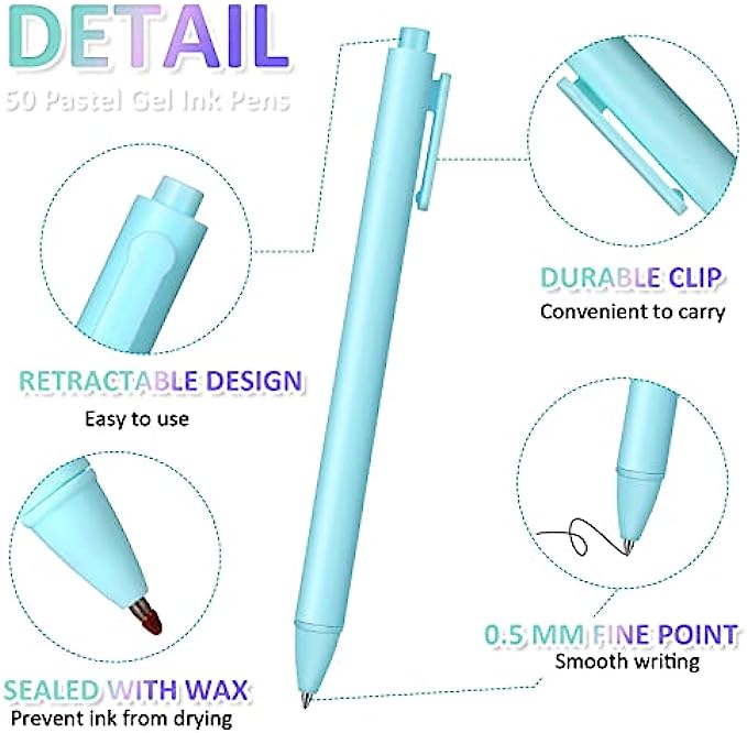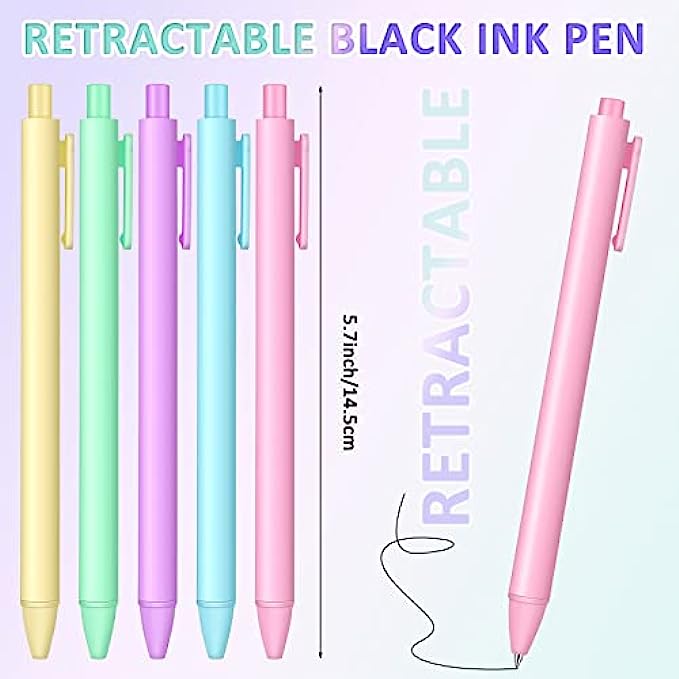 100 Pieces Retractable Gel Ink Pens Black Ink Cute Pens 0.5mm Fine Point Writing Pens Pastel Pens Cute Pens Office Supplies for Writing Journaling Taking Notes School Office