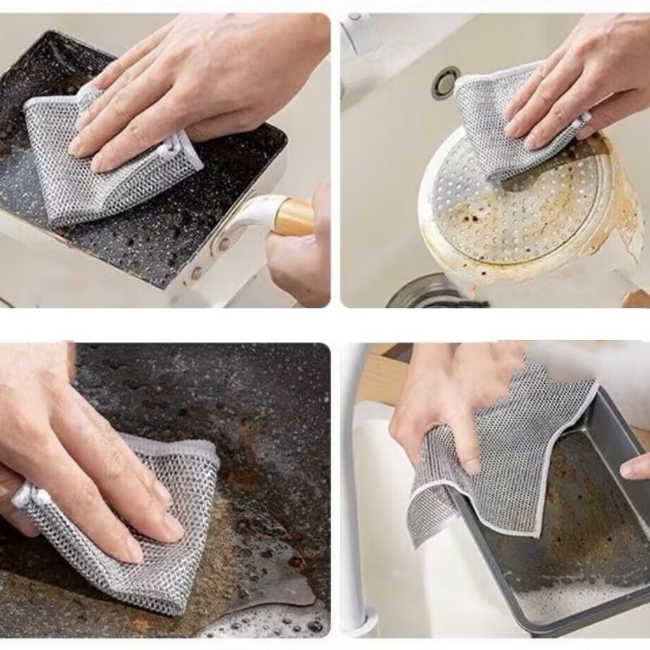 Quality:Good Suitability:Good Performance:Good The metal wire cleaning cloth is very useful to clean your plates or wire basket of the air fryer. It’s doesn’t scratch the surface of the stainless steel pots. I prefer to fold the cloth into 4 layers square puff (as shown in the 2nd photo) for more effective cleaning and keep the cloth tidy and easy storage. Delivery is fast and the price is good.