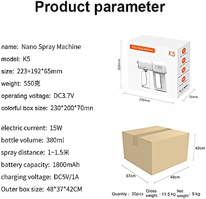 • Wireless handheld sanitizer spray machine: The sanitizer spray machine used by cleaning professionals yet easy enough to be used by small business owners and homeowners who want to clean their own spaces. The wireless handheld design can make you use it more comfortable and convenient without the inconvenience of rope traction.