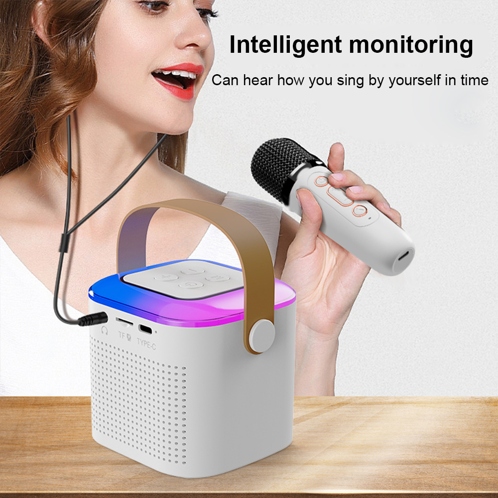 Portable Wireless Bluetooth Dual Microphone Karaoke Speaker Machine with colorful night light