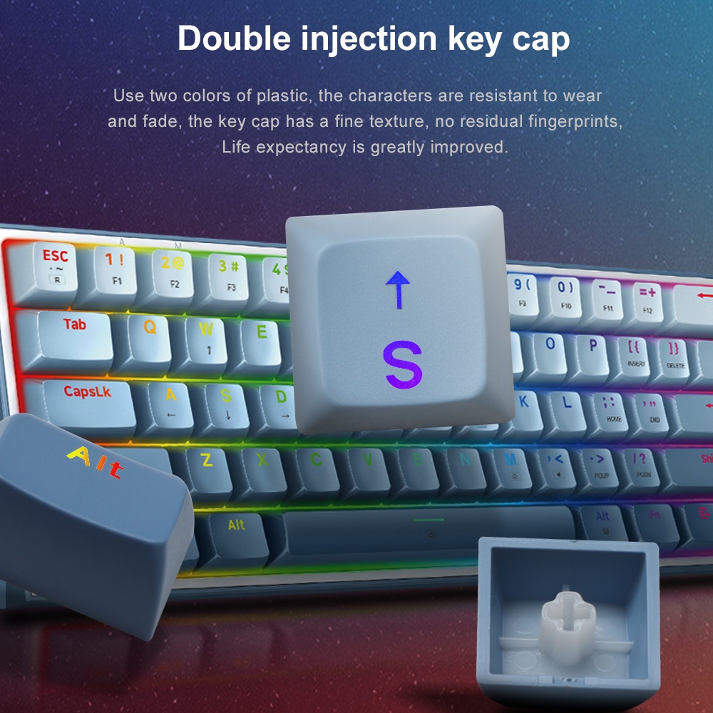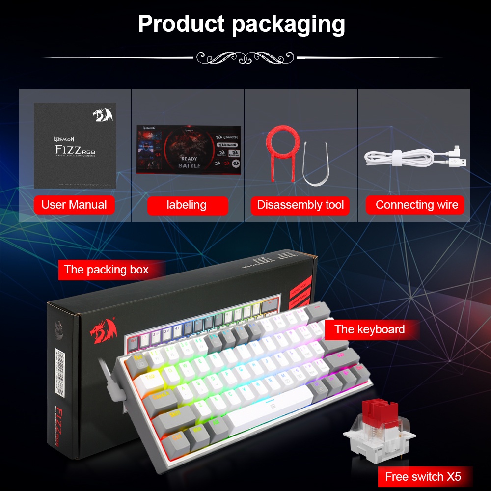 REDRAGON Fizz K617 RGB USB Mini Mechanical Gaming Wired Keyboard Red Switch 61 Key Gamer for Computer PC Laptop detachable cable