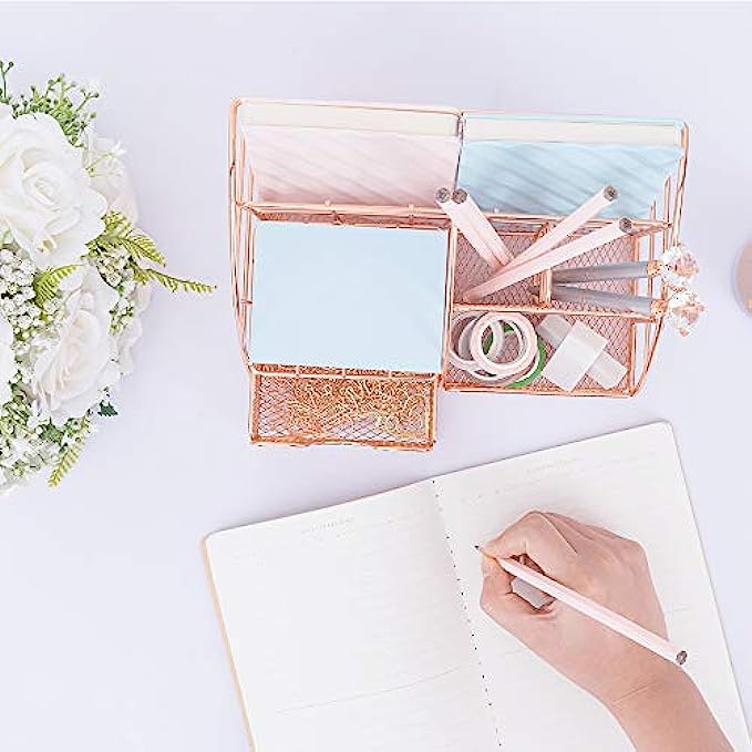 • Convenient And Practical: Desk organizer comes with rose metal finish design - elegant and noble. Mesh design concept - more fashionable and convenient, so that it can be used in different places, storing large or small stationery and toiletries at any time. , the desk organizer is also a fashionable gift.