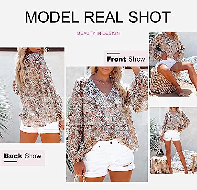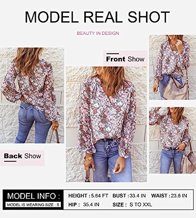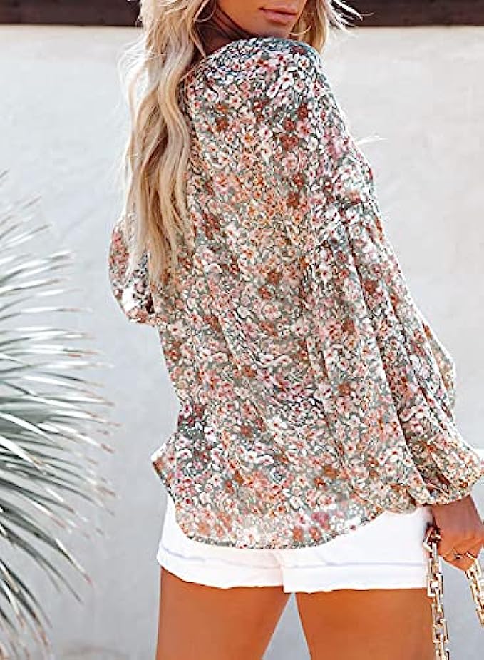 • Fashion Boho Floral Shirt for Women Summer Casual. Sexy V neckline, long sleeve top for women,Casual loose fit womens tops.