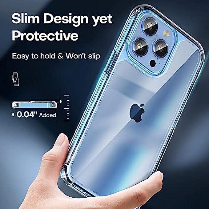 • ?【Crystal Clear & Not Yellowing】: Using high-grade Germany Bayer's ultra-clear TPU material, enjoying the original beauty of iPhone 13 Pro. The Nano antioxidant layer effectively resist stains and sweat, not easy to get greasy and yellow over time, perfectly shows the original color of your phone.