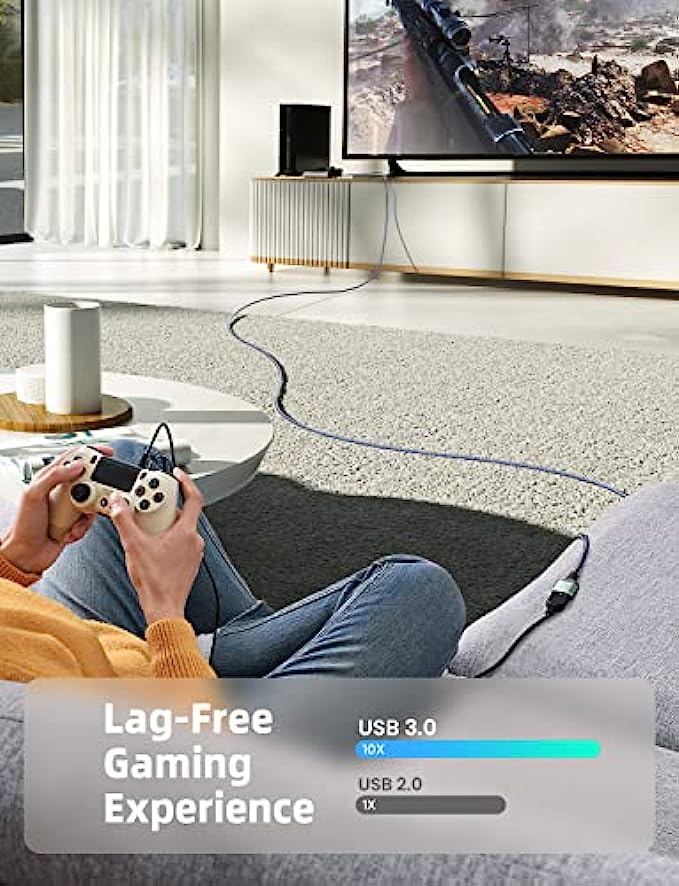 • 10FT PERFECT LENGTH: With the perfect 10ft length, you can play the game freely ,or lie on the sofa to use your devices for video while you are charging.What's more,you can also extend your surveillance camera (please make sure the camera interface is USB A port). Perfect Length for your easy life-use.