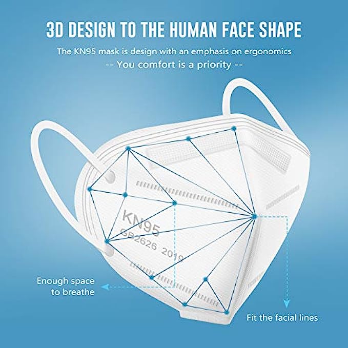 • Skin-friendly and Comfortable : These KN95 face mask use skin-friendly non-woven fabric, no irritation to your skin, High-elastic ear loops and adjustable nose clip to ensure a comfortable fit and no strain of ears