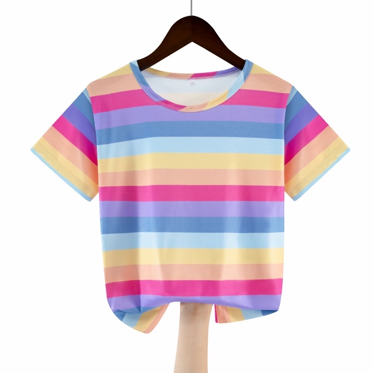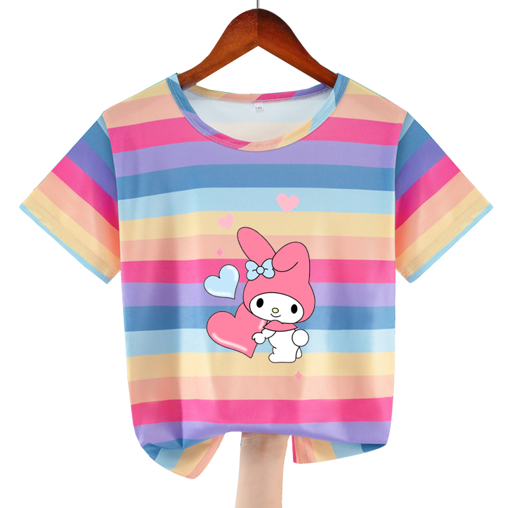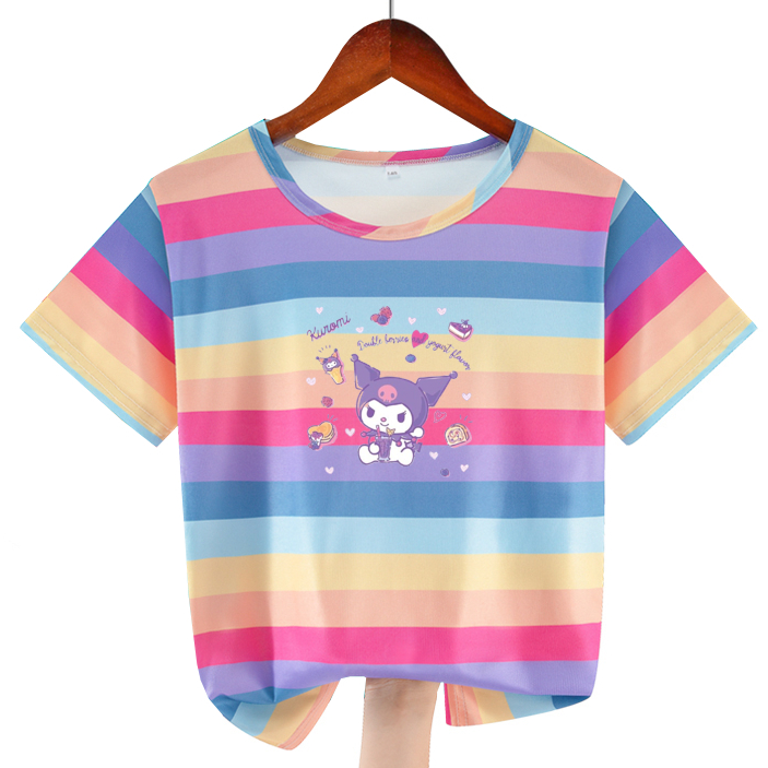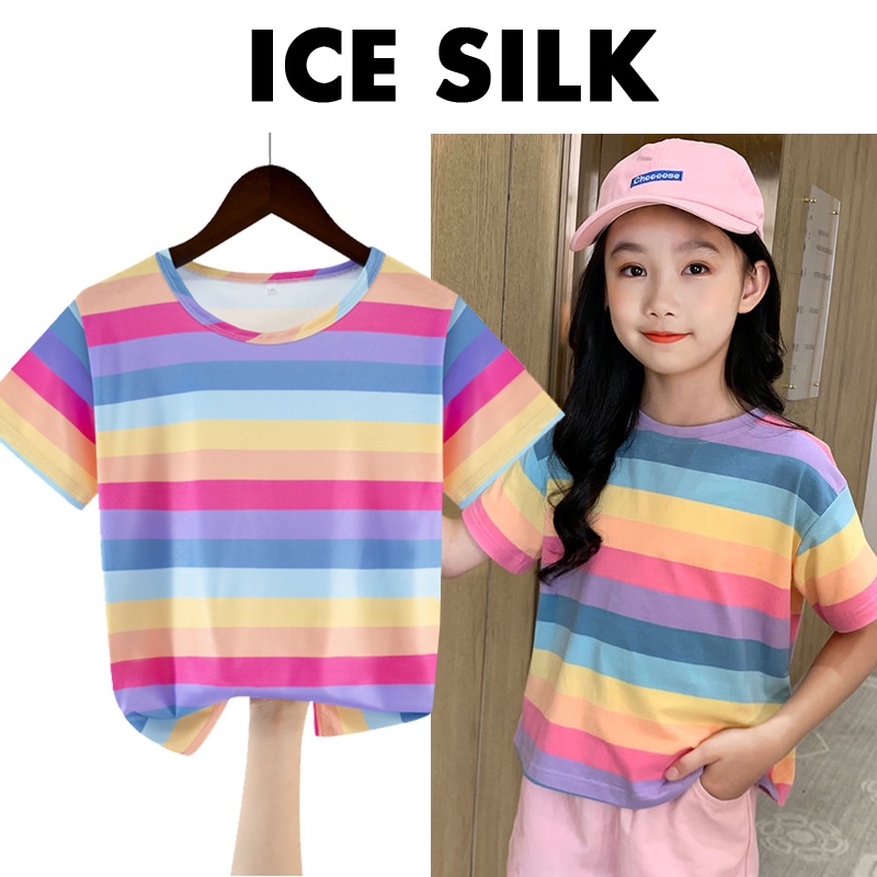 Girl Cartoon Rainbow Print Ice Silk T-shirts