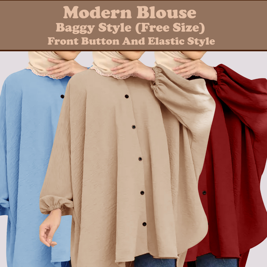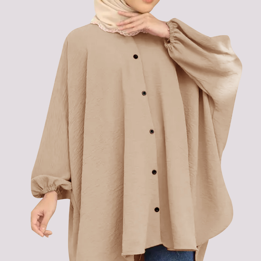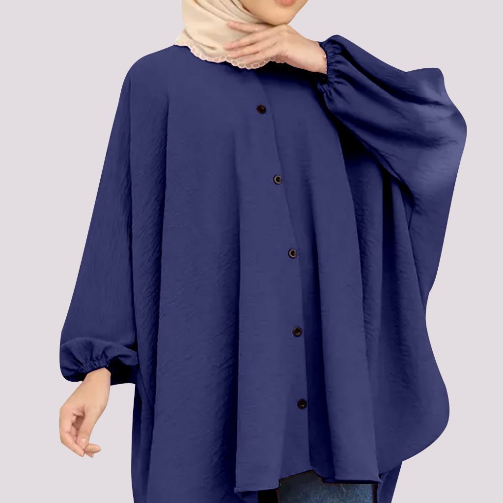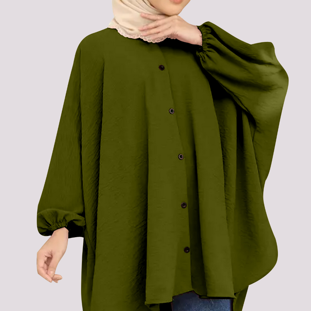 Korean Style Women Long Friendly Sleeve Blouse Italian Crepe Viral Shirt Baggy Top Blouse Viral / Free Size