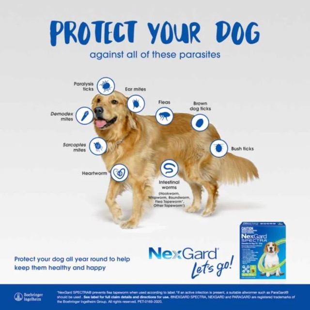 Performance:good Quality:good Suitability:good Stock up of monthly nexgard spectra for my dogs. One tablet per month to keep them safe and healthy. Products came nicely packed, very new and fast delivery. Thanks