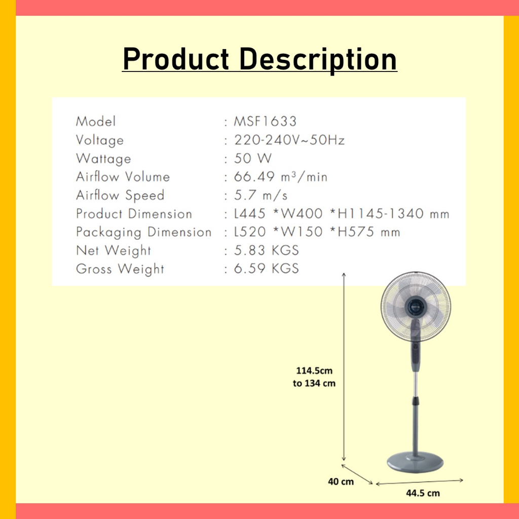 MISTRAL (MSF1633) 16" STAND FAN