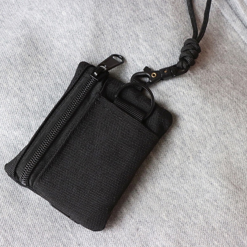 Material Quality:FANTASTIC Colour:NICE Excellent quality 2 zipper mini cards/coins purse with bracket and ring for key attachment. Thick canvas fabric with sling too. Highly recommended. ???⭐️⭐️⭐️⭐️⭐️