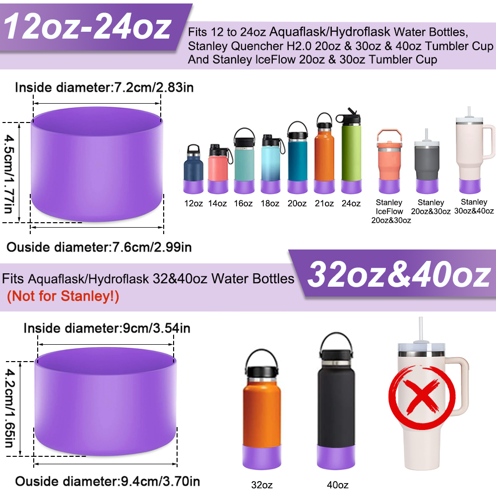 Protective Silicone Boot for Aquaflask and Hydroflask 12oz-40oz Wide Mouth Water Bottle, BPA Free Anti-Slip Bottom Sleeve Cover