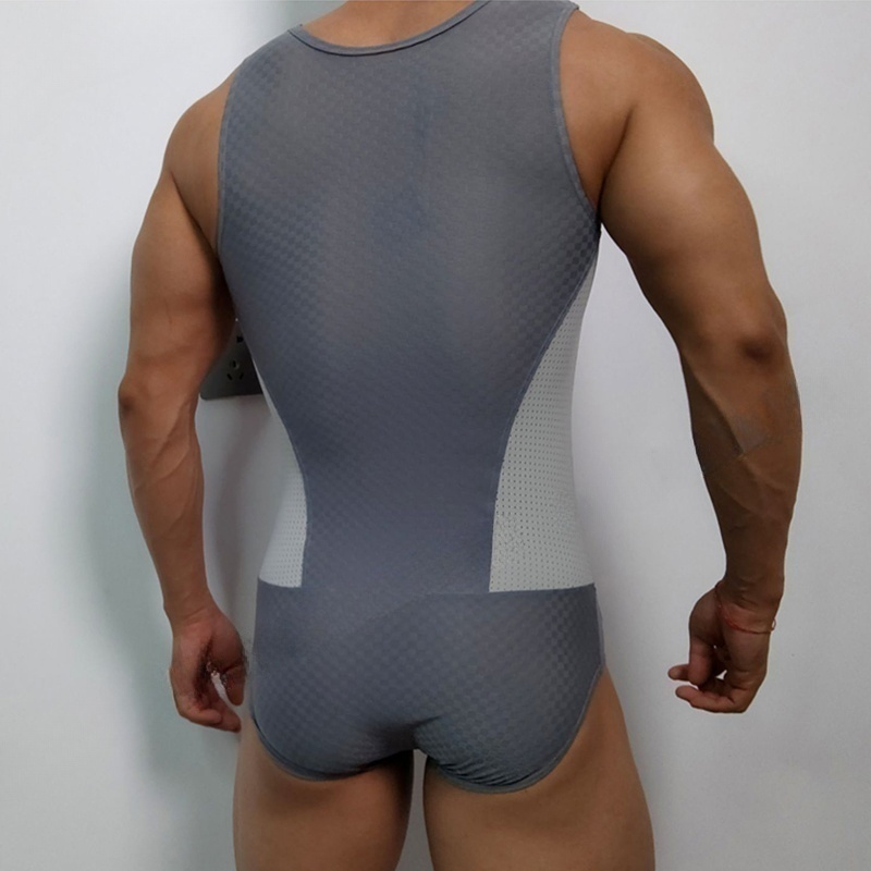 Pt776 Men's Sexy Mesh Breathable Solid Color Briefs Suspender Jumpsuit Muscle Men Sports Close-fitting High Elastic Comfortable Body Shaping Fitness Gymnastics Wrestling Training Clothes Gay Nightclub